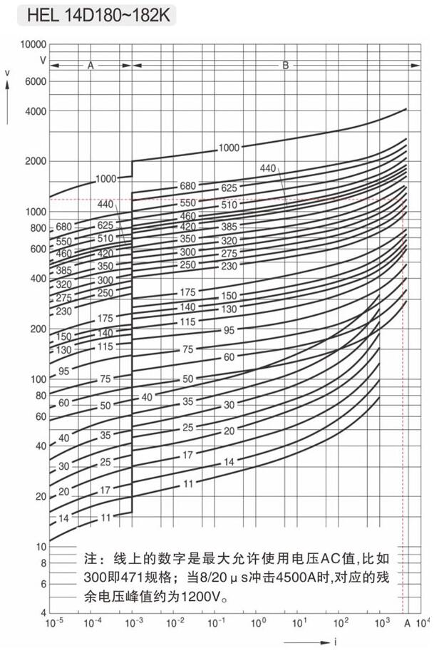 B區是沖擊電流與限制電壓對應區