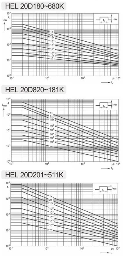 Remark: the Impluse voltage testing standards(1.2/50μs) with 40 times are only applicable to the products which with the varistor voltage more than 430V.