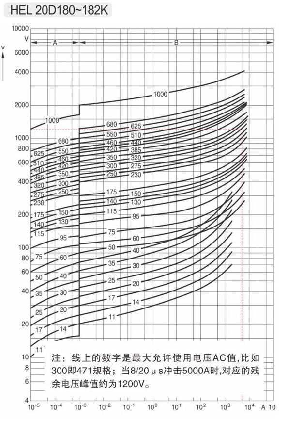 B區是沖擊電流與限制電壓對應區