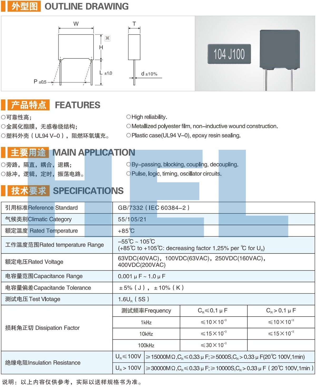 MEM塑料外盒金屬化聚酯薄膜電容器 CL21X-B